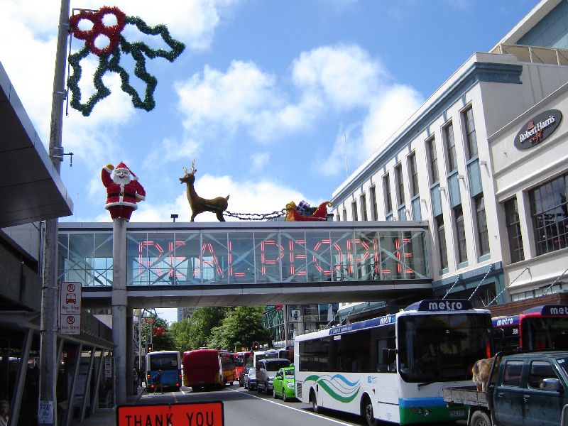 Genauso sieht es hier mit allem aus, was mit Weihnachten zu tun hat. Mal abgesehen, dass sich unser Weihnachtsstimmungswert auf -5 befindet, vermittel Neuseeland auch absolut nichts, was diesen verbessern koennte. Die vereinzelnt aufgehaengten Weihnachtssterne an den Strassenlaternen und der vor der Kathedrale hässlich geschmueckte und auf einem haesslichen Podest stehende Weihnachtsbaum verschlimmern das Gesamtbild eher noch mehr. Wenn wir Glueck haben, ist in Deutschland schon das meiste an Weihnachtsartikeln und -deko verschwunden, wenn wir ankommen.