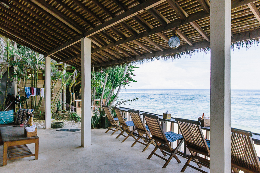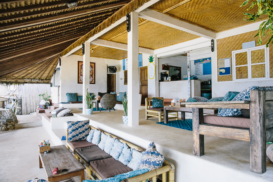 Mein Zimmer war sehr spartanisch eingerichtet. Ich hatte ein Bett, eine kleine Komode, einen Spiegel, einen Ventilator und einen fast vollen 19l Tank Trinkwasser. Die Toiletten wurden sich geteilt, und Zimmerdecken gab es nicht. Dafür wurden eben die Wände aus geflochtenem Bambus etwas höher gezogen, und man muss ja schließlich nicht lauschen, wenn sich jemand nebenan unterhält 😉 Und wenn jemand auf die Toilette ging, naja… Es war eben alles sehr bescheiden und auf low budget gemacht, für die meisten Surfer Dudes völlig ausreichend.