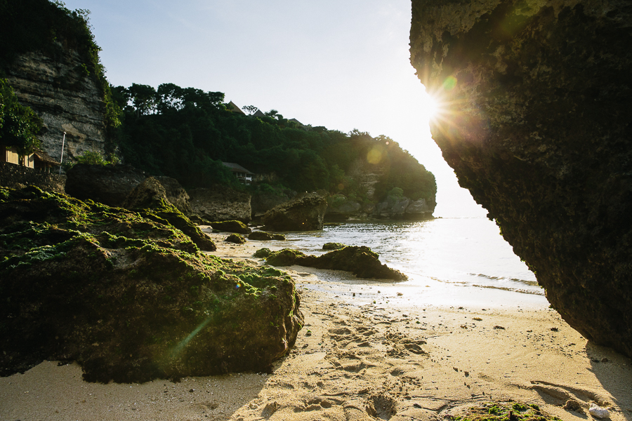 Bingin ist ein kleiner Ort im Westen der südlichen Halbinsel und eine der Hauptanlaufstellen für Surfbegeisterte weltweit. Der Ort selber liegt hoch oben auf einer Klippe, was beudeutet, dass man, um zum Strand zu kommen, sich den ganzen Weg nach unten bahnen muss. Meine Unterkunft, die direkt am Meer lag, war nur über eine in den Fels gehauene Treppe, die teils mit Sandsäcken oder groben Steinen verstärkt wurde, zu erreichen. Mit Absätzen von fast fünfzig Zentimetern und noch extremeren Temperaturen als in Kuala Lumpur, überlegte ich mir jedes mal genau, ob ich die Klippe wirklich bezwingen musste. Der Höhenunterschied zwischen Strand und Klippe betrug bestimmt 70 Meter, und ich bin jetzt noch überzeugt: senkrecht ist bestimmt nicht so steil, wie diese verdammte Treppe.