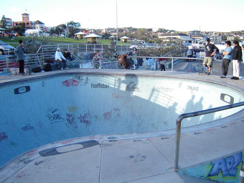 Bondi Beach ist doll bekannt fuer surfing und Party am Abend. Und das kann ich nur bestaetigen. Die Jungs sind mit ihren Brettern von morgends bis abends auf dem Wasser, egal wie kalt. Ich haette mir auch nen Neoprenanzug unterziehen sollen… Und bis ca. 0:00 steppt hier der Baer auf der Promenade (wenn man das hier so abwertend bezeichen darf). 90 % der Damen hier sind alle sehr (ich meine SEHR) leicht bekleidet. Zu Tages- und Nachtzeit, scheinbar das ganze Ajhr ueber. Teilweise so aufgebraetselt, dass man denken koennte, hier um die Ecke sei zum Abendball geladen. Aber das gute ist, all diese koennen auch so rumlaufen, sieht sehr nice aus!!! Also an alle Herren, ab nach Bondi Beach! Schde, dass ich nicht im Hochsommer hier bin.