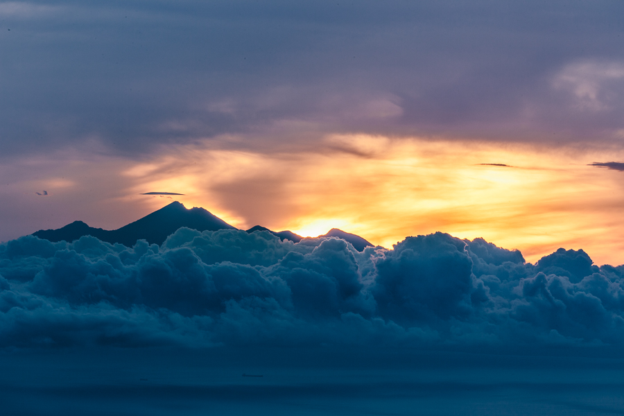 Wir haben gegen 03:00 mit dem Aufstieg begonnen, und es war arschdunkel. Unser Guide, der uns mit einer kleinen Taschenfunzel versorgt hatte, führte uns sicher auf 1700 m Höhe, wo wir mit einer Horde anderer Bergsteiger auf den Sonnenaufgang warteten. Ob es sich für mich gelohnt hat, stelle ich bis heute in Frage, denn gerade von diesem Spot hätte ich mir den Sonnenaufgang deutlich spektakulärer vorgestellt. Jedoch zähle ich diesen Trip, der für uns fünf Stunden für Auf- und Abstieg in Anspruch nahm, zu den intensiveren Workouts meiner Reise.