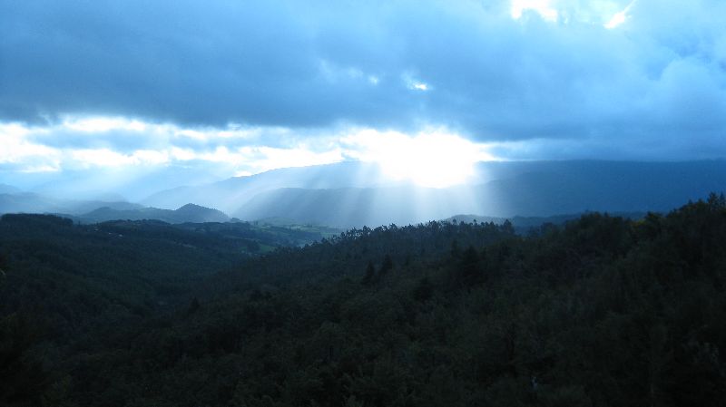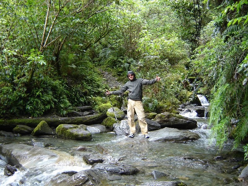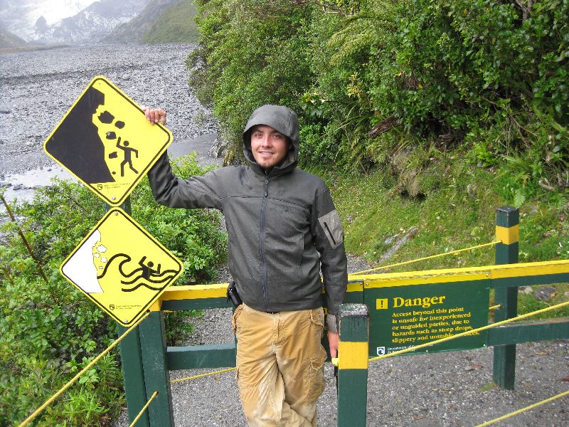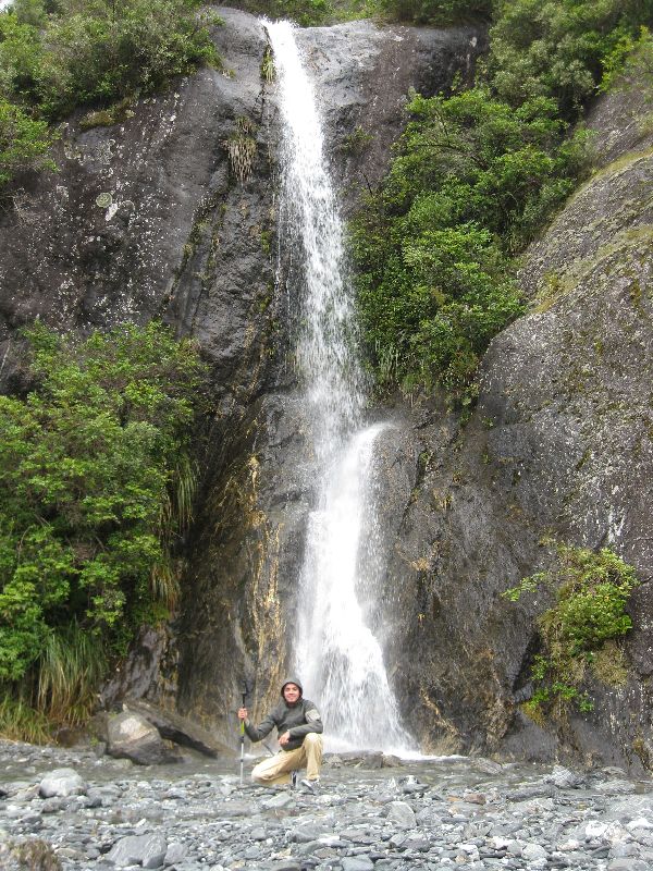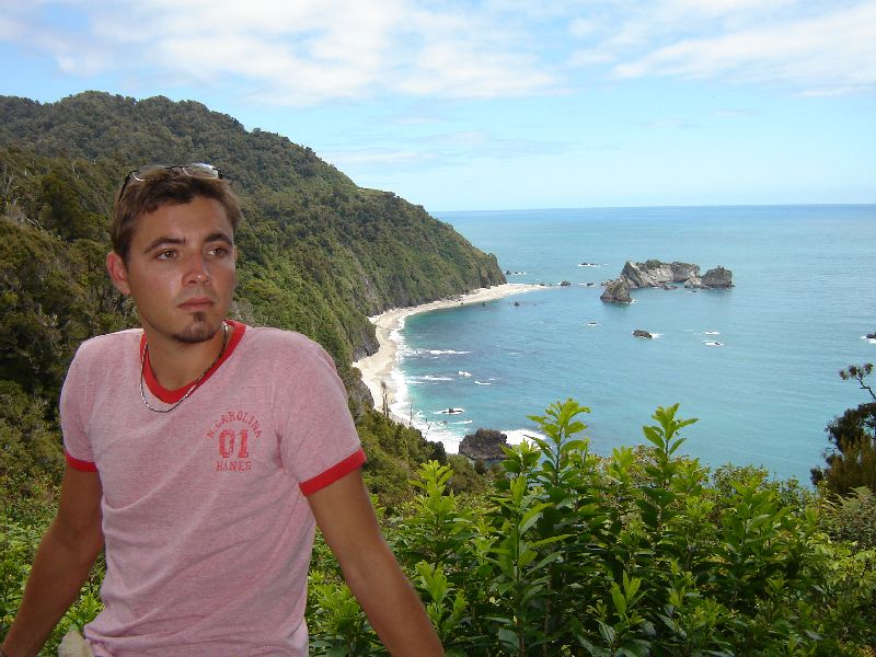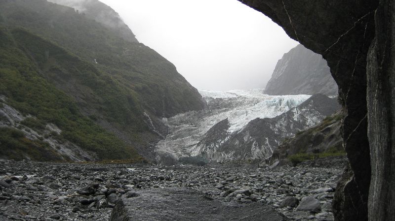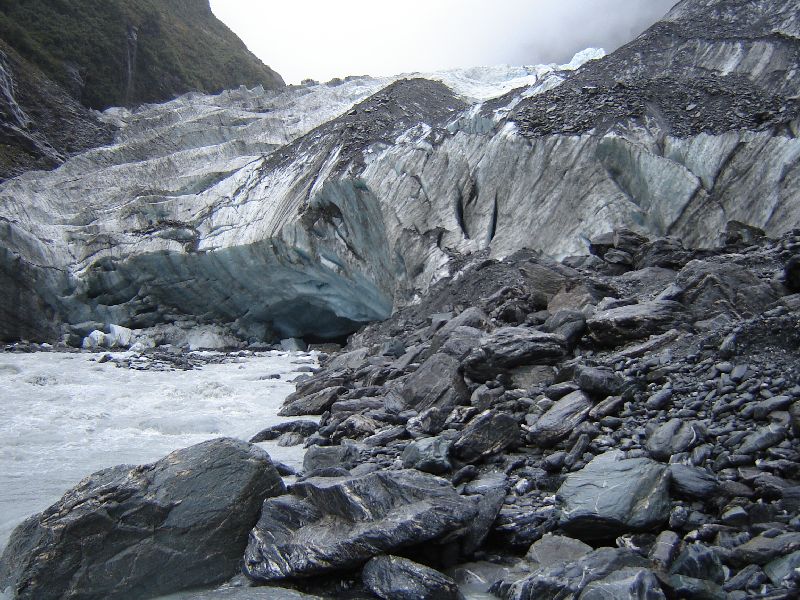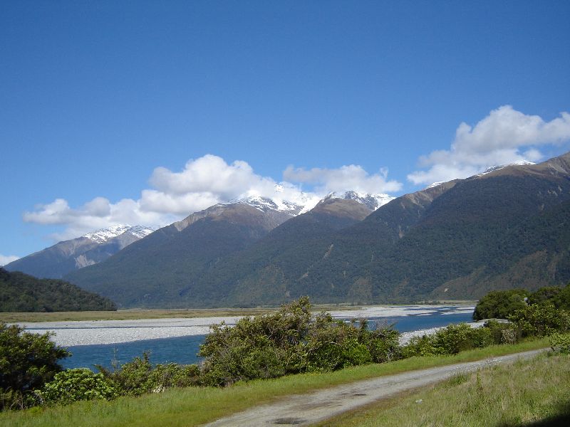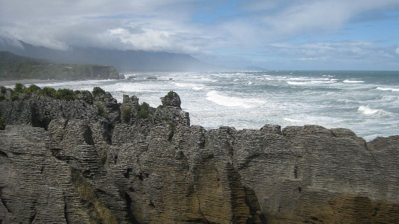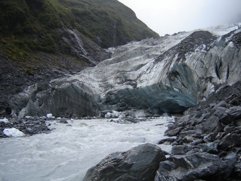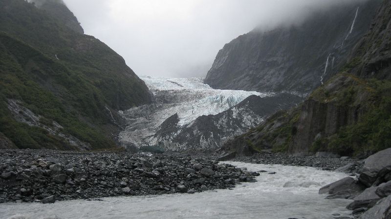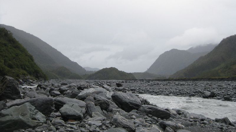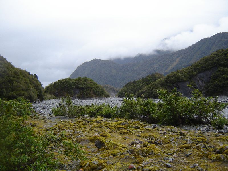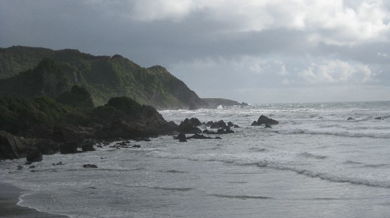 Die Westkueste, die wir vorher bestaunen konnten, war sehr regnerisch. Auf Grund der lang gezogenen Bergkette, die die feuchten Luftmassen tagtäglich zum Abregnen zwang, haben wir regelmaessig einen nassen Hintern bekommen, was und aber nicht von Wanderungen in der Umgebung, bis hin zu einem Gletscher, abgehalten hat.